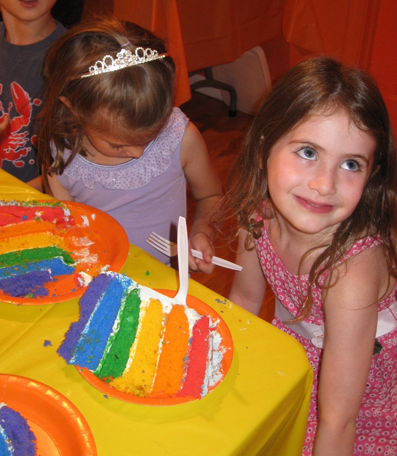 Still, the cake was a huge hit with the 20 kindergarteners at Noalee’s party, not only because of the enduring pleasure of a surprise inside, but also because each kid gets a MASSIVE slice no matter how thin you try to cut it. It’s only fair to give each kid a taste of each color, even if they all taste exactly the same.